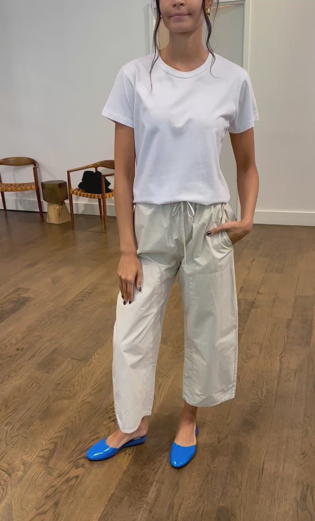 The Kyoto Carpenter Pant in Chalk by LESET combines heritage workwear aesthetics with modern comfort. Constructed from garment-dyed Kyoto Cotton, this piece features a relaxed silhouette that tapers at the ankle, complemented by topstitched utility panels and functional patch pockets for authentic detailing. The pull-on waistband provides all-day comfort, while 100% cotton delivers a crisp feel that gains depth over time. Easy maintenance with cold machine wash and low tumble dry. Made in Los Angeles, CA.