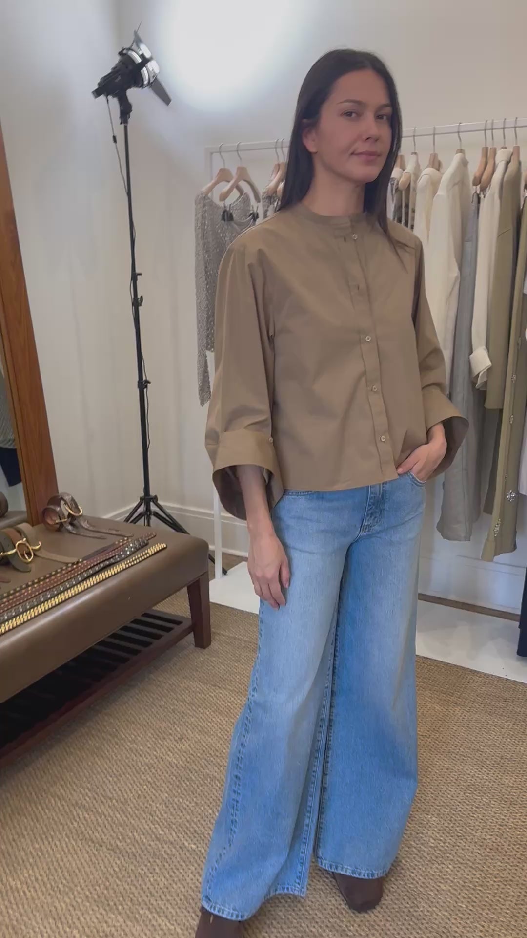 Beau Cotton Poplin Shirt in Kelp