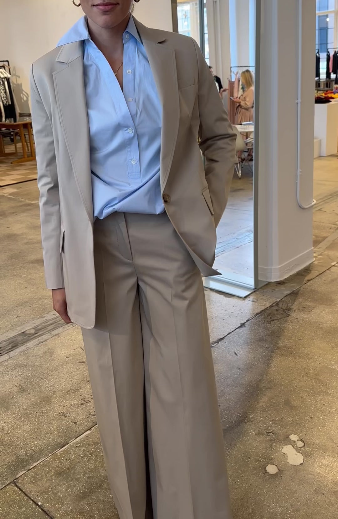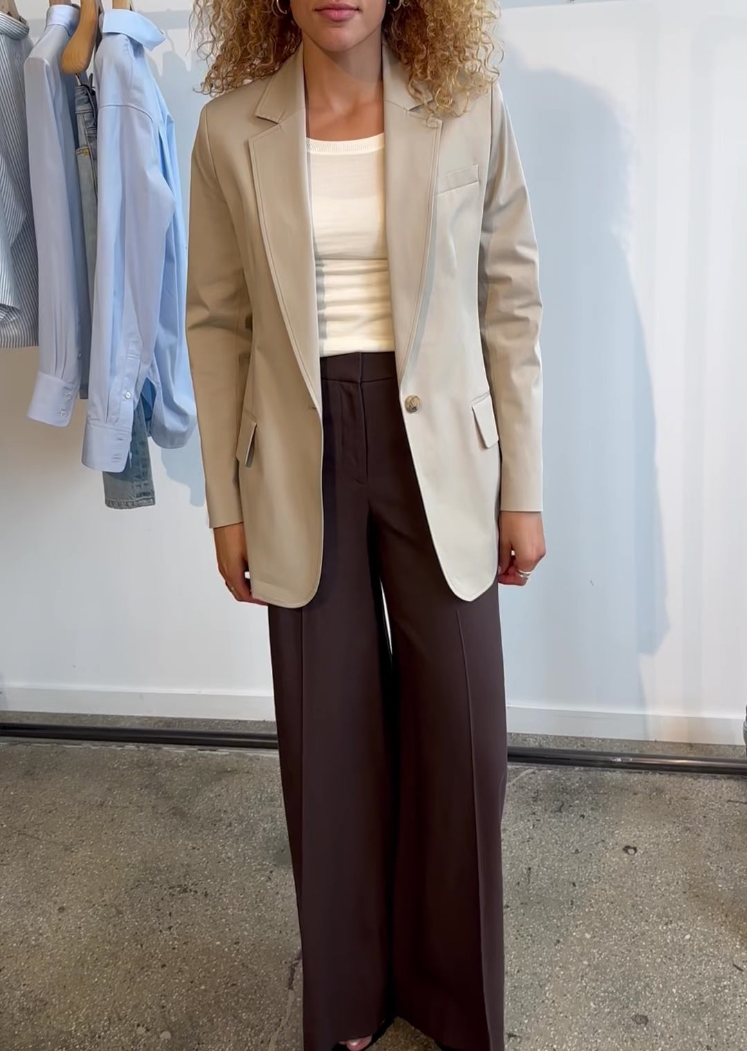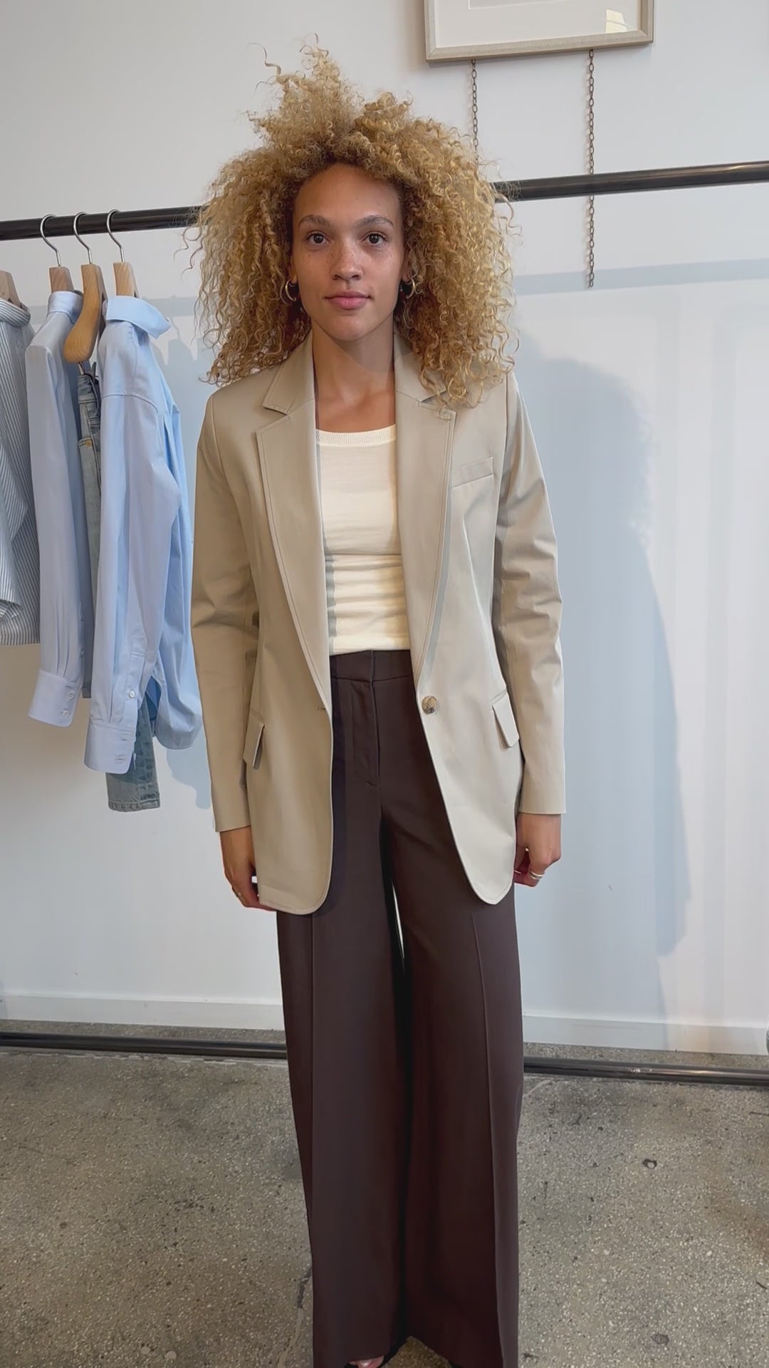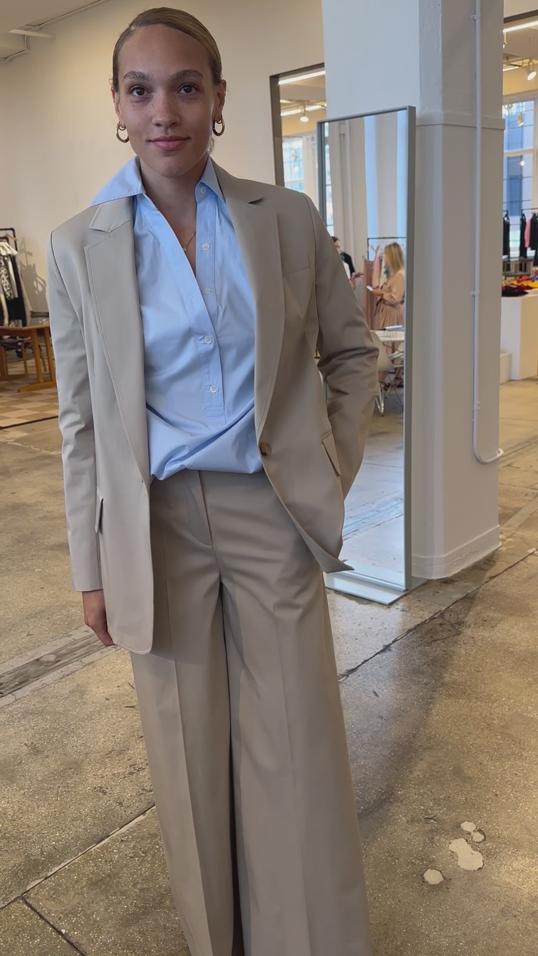 Discover the Katherine Blazer in Khaki, a versatile wardrobe essential from designer Kulson's Spring 26 collection. This refined piece seamlessly transitions from polished professional settings to casual weekend wear, pairing effortlessly with tailored trousers or your favorite denim. A timeless investment that elevates any outfit with understated sophistication.