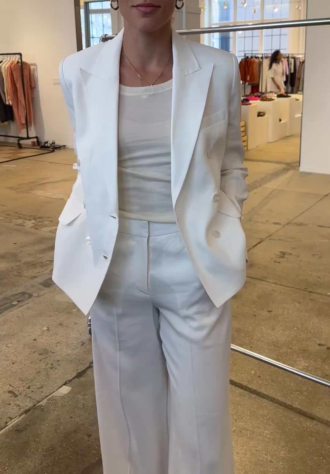 Crafted from luxurious Italian stretch linen, this Mercer jacket delivers understated sophistication in a timeless ivory shade. The tailored silhouette works beautifully across occasions—wear it layered over dresses, paired with tailored pieces, or styled casually for an instantly refined aesthetic. Versatile enough to transition from day to evening, it's the perfect layering piece for any wardrobe.