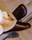 The Pantoffel Muti Slide delivers understated luxury for those who refuse to compromise on comfort or conscience. Featuring a removable cork footbed that molds to your unique contours, these slides provide personalized support through every step. Wrapped in sumptuous African curly shearling lining, they envelop your feet in warmth and softness. The polished leather upper strikes an effortless balance between refined elegance and relaxed ease—equally at home during quiet moments indoors or casual outings.