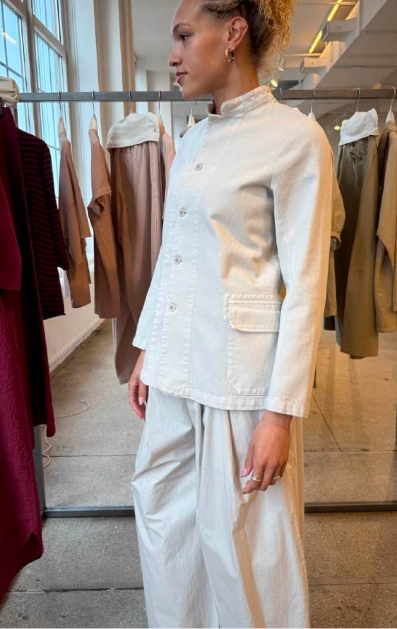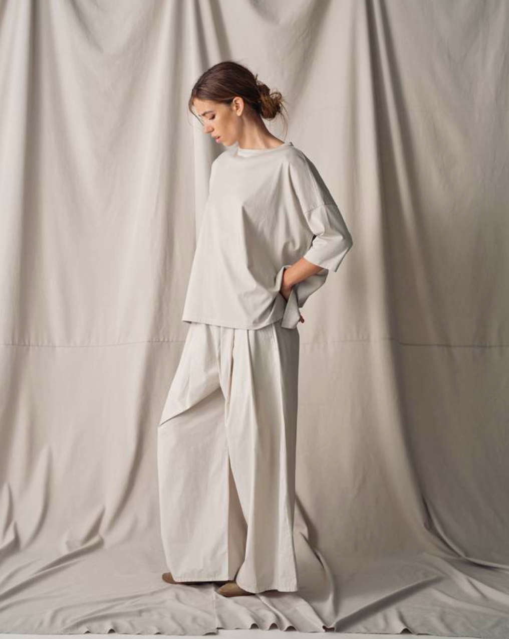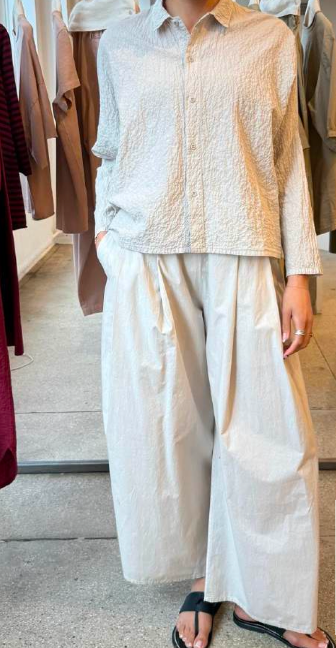 Relaxed cotton poplin pant with a loose leg silhouette and practical side pockets. The Panta Dalla Clara delivers effortless style in a timeless stone hue.