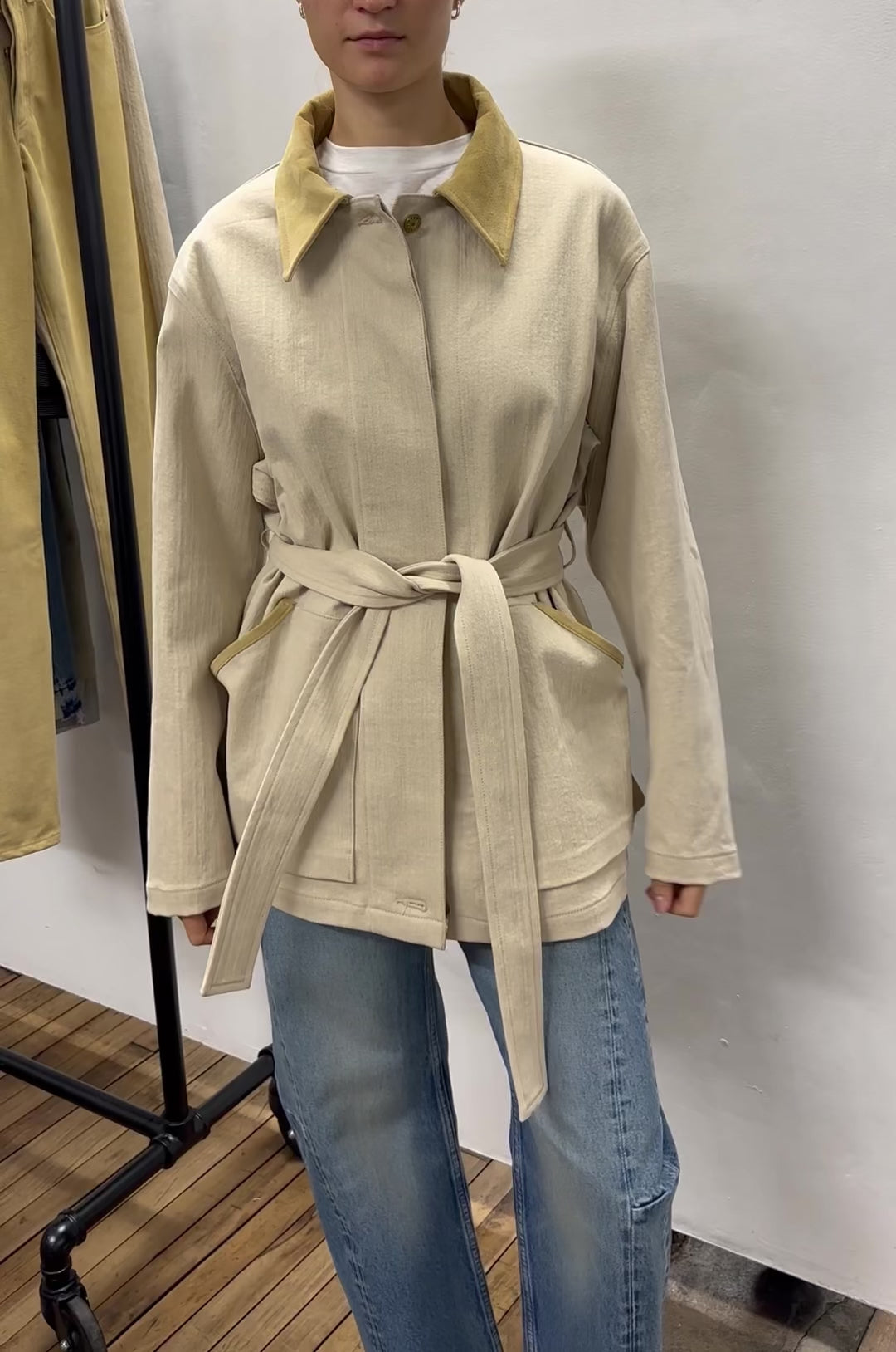 This khaki workwear jacket from B Sides delivers both durability and style. Built from sturdy cotton twill with a luxe suede collar, it's the versatile layer you'll reach for again and again. Made in Los Angeles.