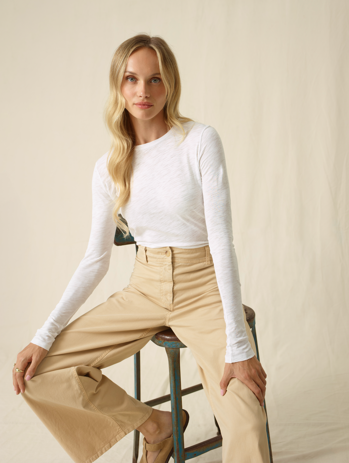 Cotton Cashmere Long Sleeve T-Shirt in Graphite