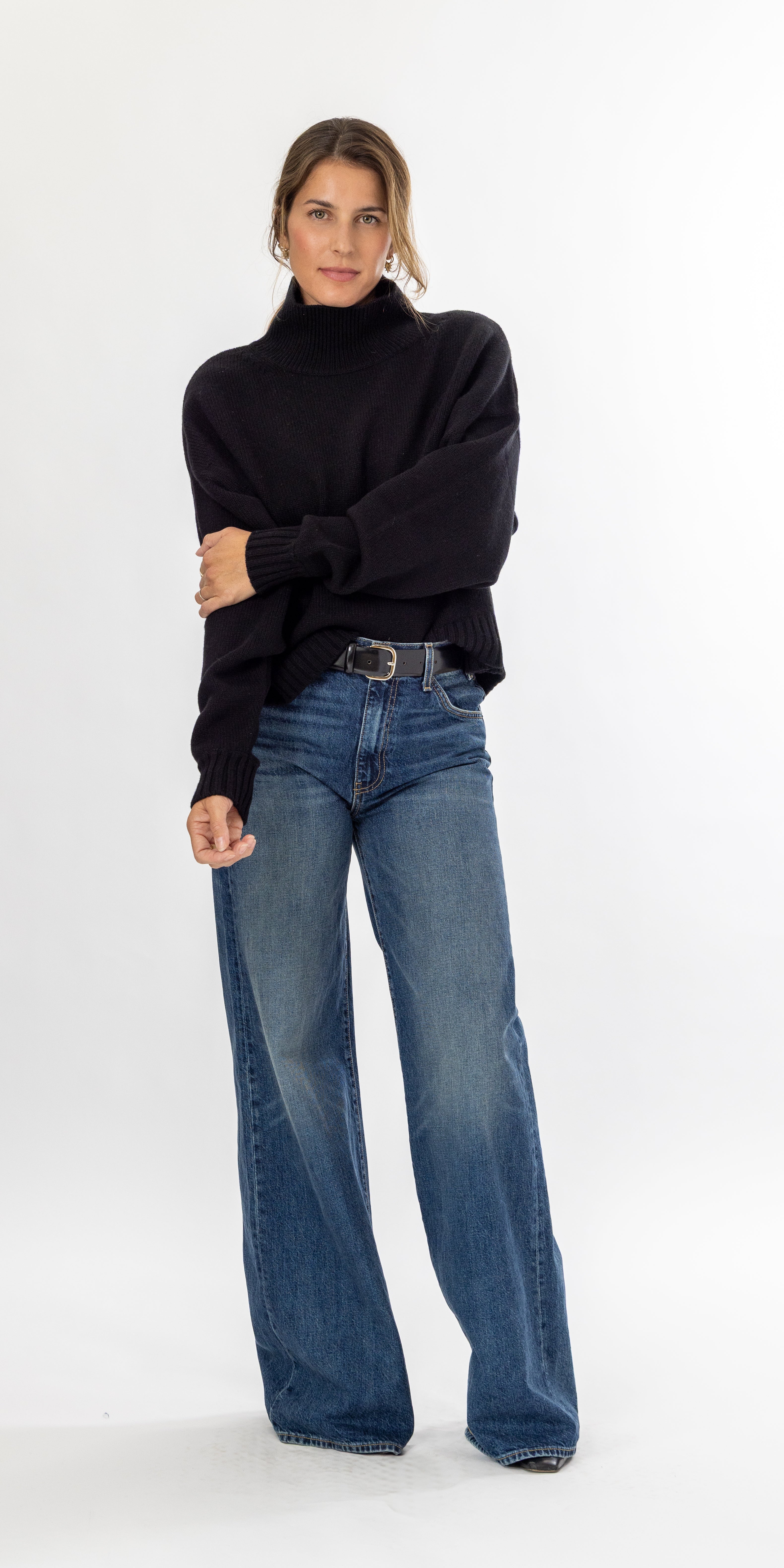 Cotton Cashmere Long Sleeve T-Shirt in Black