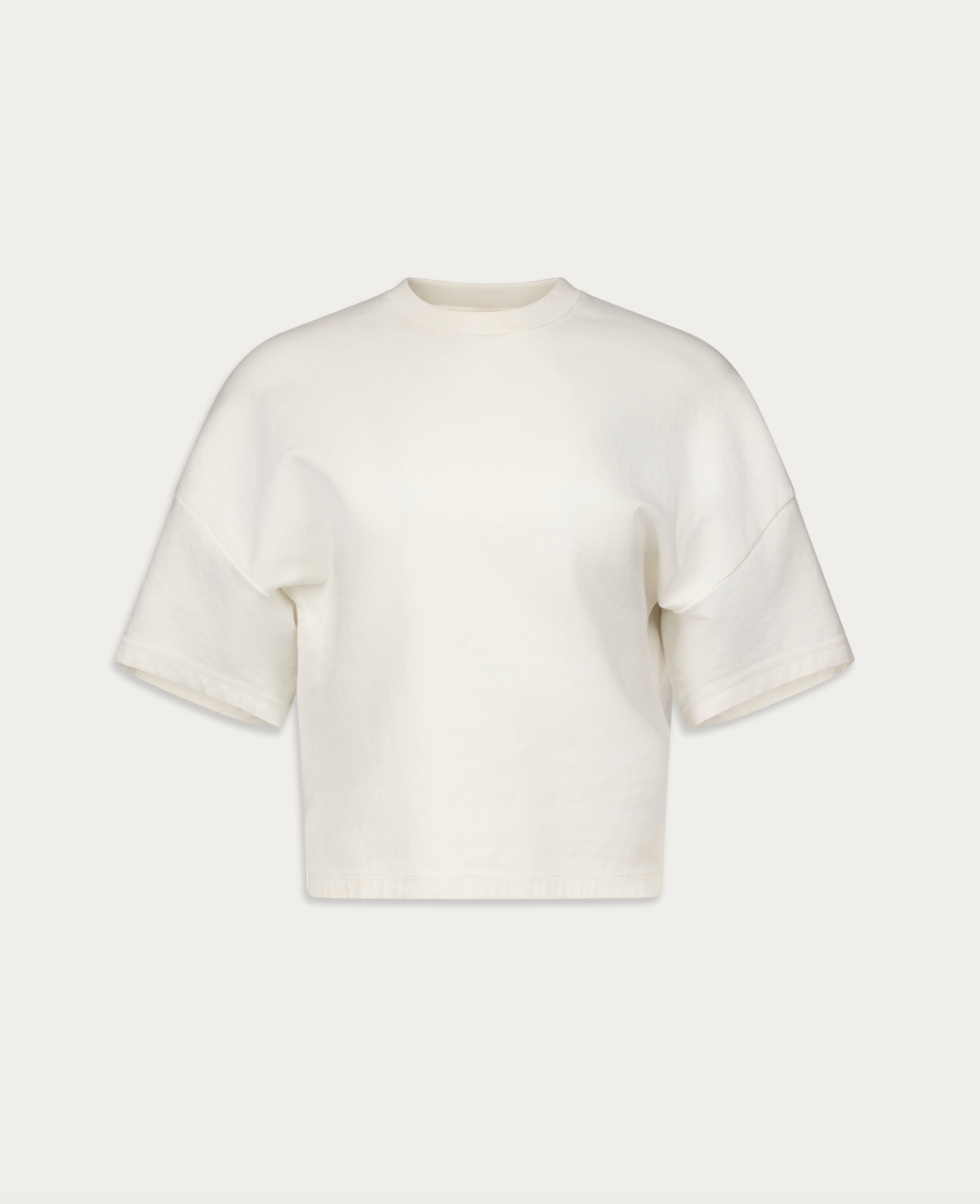 The Rift Sweatshirt T-Shirt in Bone by OSSOU exemplifies precision tailoring meets understated elegance. Cut from structured cotton jersey, this slightly cropped relaxed-fit piece delivers architectural silhouette with tactile softness. The signature rounded shoulder seams showcase intentional design details that elevate the everyday essential. Produced in Portugal with meticulous craftsmanship, it's built to withstand time and wear.
